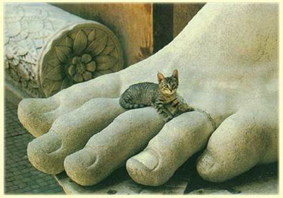 I have been fortunate to have visited Rome several times and even stayed there for one month once. I have always noticed that there seem to be a lot of cats around. This especially seems to be true around any of the ancient ruins, notably the Colliseum and the Roman Forum. It also turns out that there is an official cat sanctuary at Torre Argentina which is another excavation near the center of Rome. They turn up in all kinds of places and can make very cute photos.